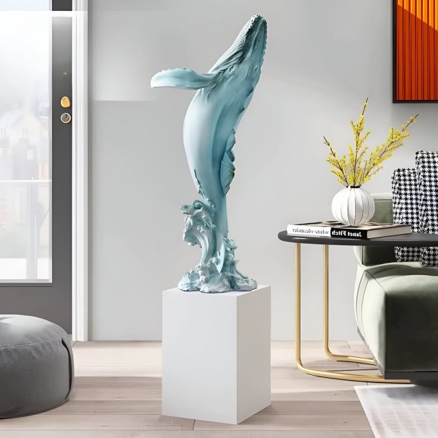 Transform any room into a gallery of modern elegance with this breathtaking Large Whale Sculpture. More than just a decoration, this magnificent resin whale captures the graceful power and mystery of the ocean, bringing a sense of calm and wonder to your living space. Whether placed in your entryway to welcome guests or beside your sofa as a conversation piece, this stunning artwork makes a powerful statement about your love for nature and sophisticated design.